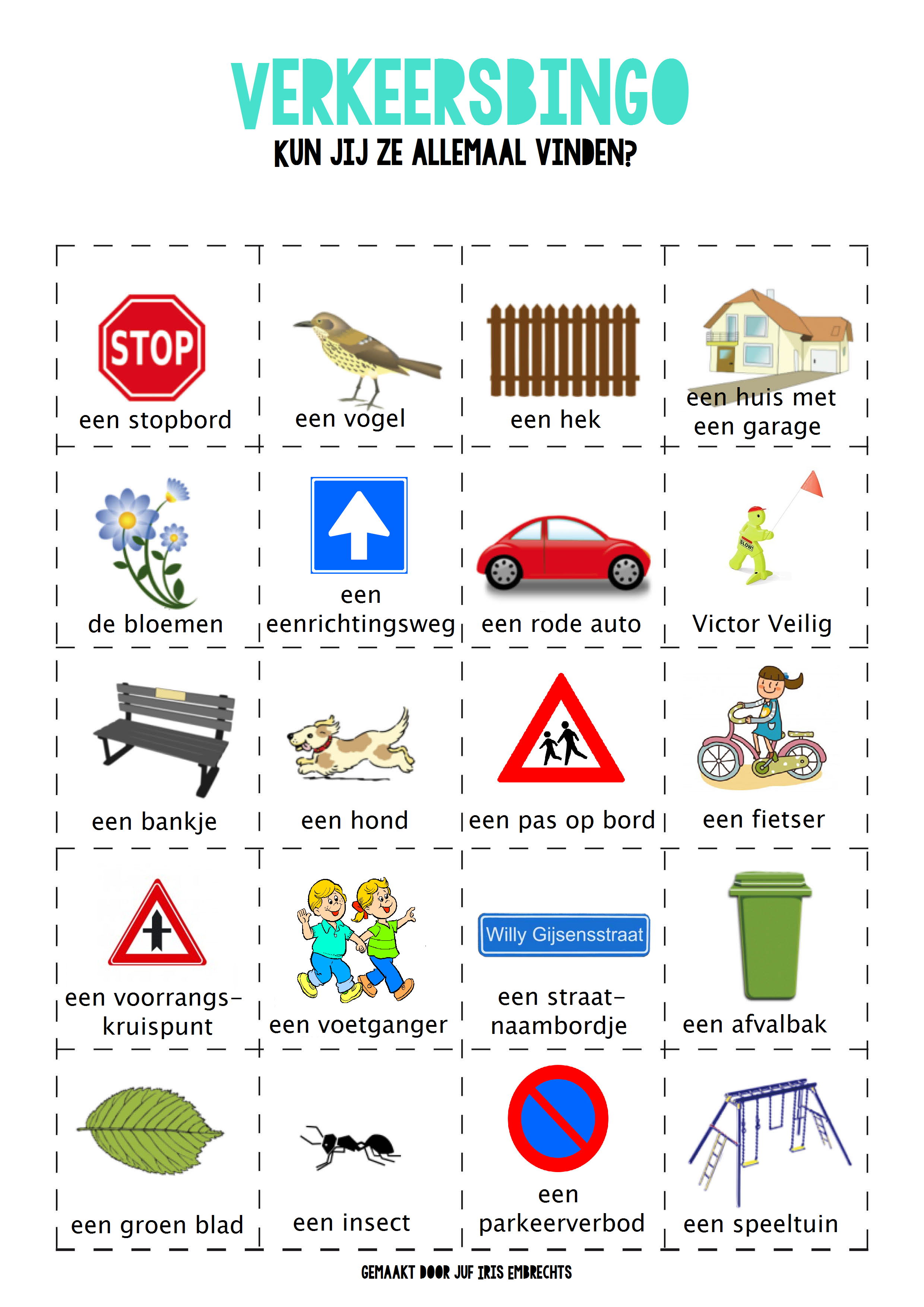Tijd om even lekker naar buiten te gaan. Dat kan met deze verkeersbingo. Lukt het jou om alle plaatjes te vinden?