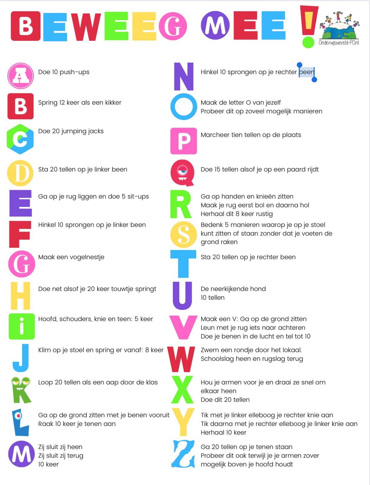 Op deze site zie je een heleboel verschillende activiteiten om lekker te bewegen. Veel beweegplezier!