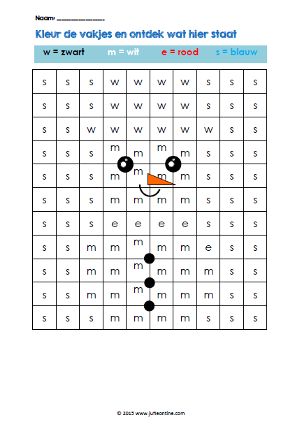Geef de vakjes met de letters de goede kleur. En wat zie je dan als figuur?