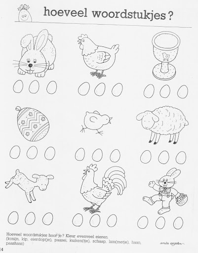 In de klas hebben we al geoefend met het klappen van de woordstukjes, dus eigenlijk de lettergrepen. Bij dit werkblad kunnen de kinderen het woord klappen en vervolgens het aantal eieren kleuren.