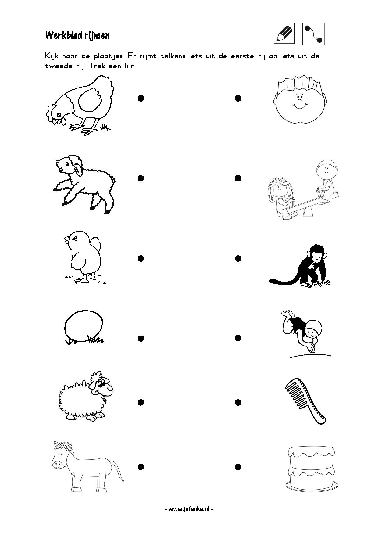 Hieronder kun je een werkblad downloaden over rijmen. Trek een lijn tussen de woorden die rijmen.